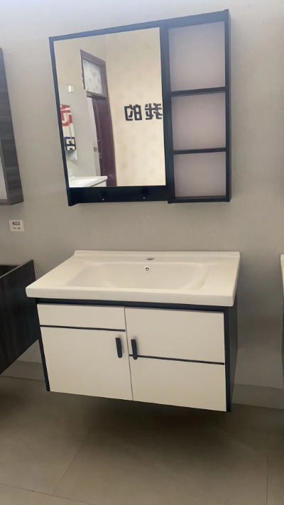 生态木柜体,陶瓷一体盆。尺寸分别是60、70、80